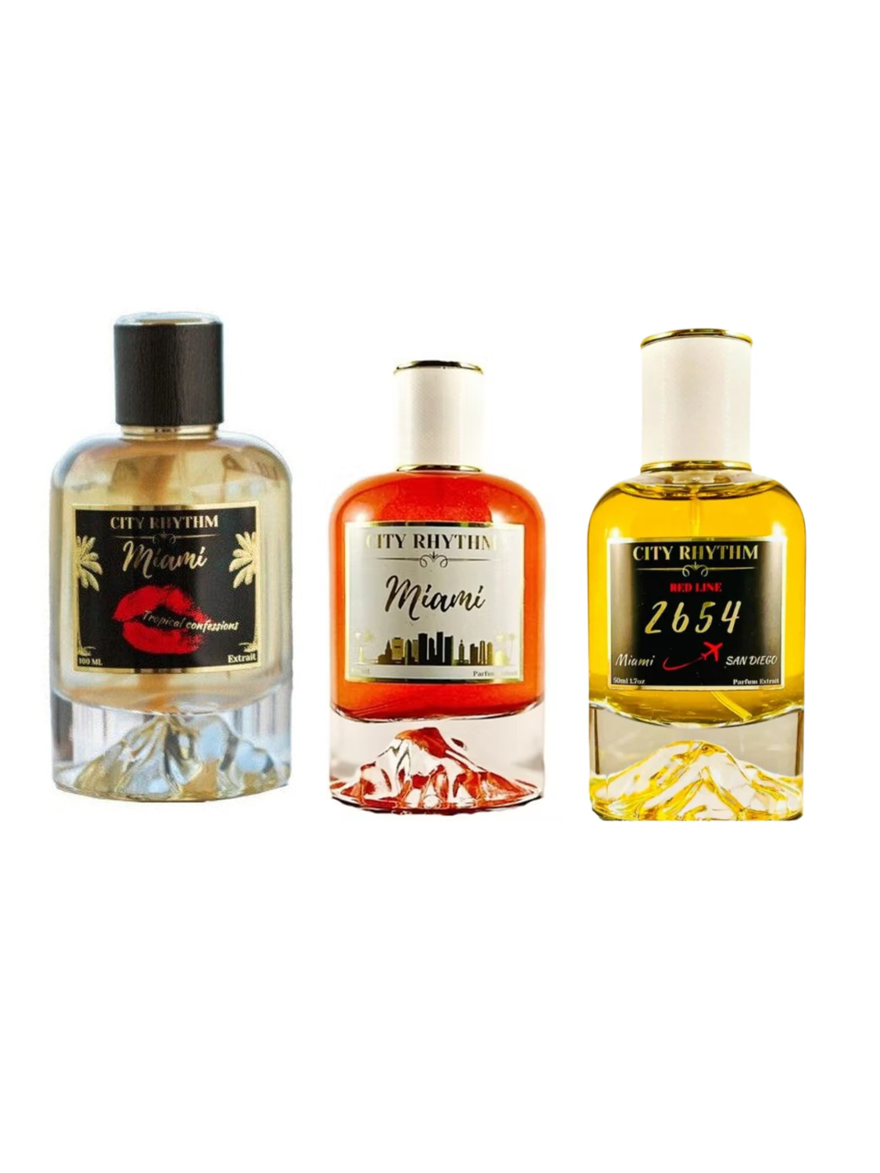 Dive into the vibrant energy of coastal life with this curated 3-piece City Rhythm decant set, spotlighting three signature scents: the sun-drenched Miami, the sensually tropical Miami Tropical Confessions, and the irresistible fusion 2654—where two beloved classics unite.